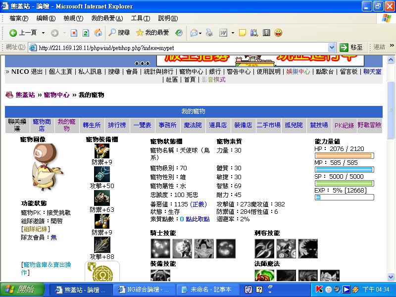 熊蓋站  -> 論壇遊戲討論 -> 寵物中心  -> 我的寵物