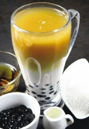 果糖30c.c.、奶精30克、紅茶包1個、珍珠30克、冰塊適量。(約1人份,360c.c)