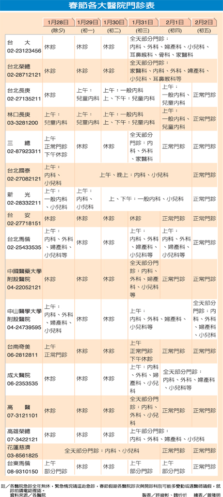 熊蓋站  -> 生活醫學  -> 【轉貼】春節各大醫院門診表