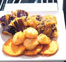 (3)將準備好的食材均勻沾上粉漿,再放入油鍋中,用180℃油炸至熟。