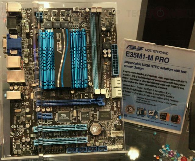 在這個時候,華碩推出了AMD Fusion E-350 APU Micro-ATX主機板, E35M1-M Pro使用了AMD Fusion E-350 APU與AMD Radeon HD 6310 DirectX 11 GPU。 該處理器憑藉全新的Hudson M1單晶片使該E35M1-M Pro成為office PCs to home PCs, and HTPC的最愛。 它擁有24Pin ATX和4 Pin CPU電源插槽,並使用了3+1相VRM。