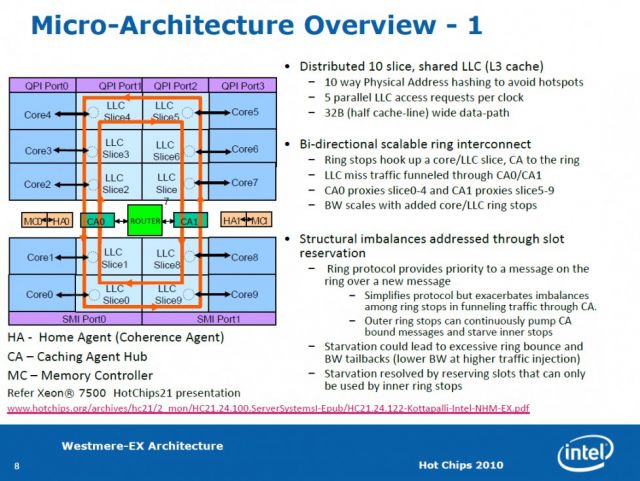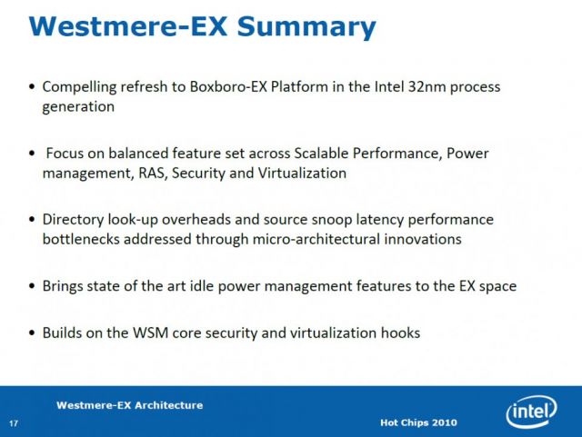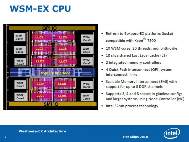 英特爾在8月22-24日在斯坦福大學舉行的Hot chips大會中公開一份名為「Westmere-EX:一個20執行緒伺服器CPU」的白皮書。