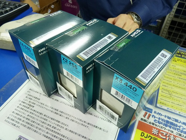 發售的有Athlon X2 255(3.1G 65W 7500日圓) ,Athlon X3 440(3G 95W 8500日圓) ,Athlon X4 635(2.9G 95W 12000日圓)
