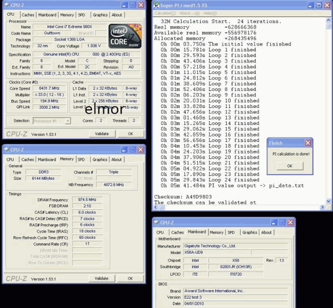 代號為Gulftown 6核心處理器的Core i7 980X,在液態氮的加持下以6431MHz爆發了5分鐘41.84秒的SuperPi 32M世界紀錄。