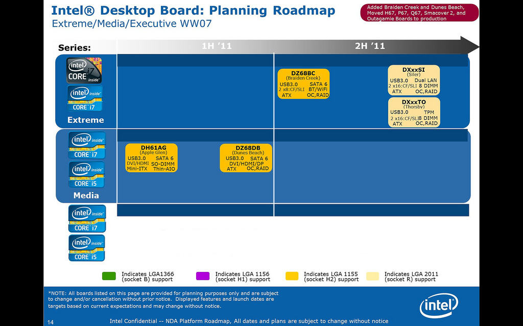就在我們仍在思考INTEL下一代晶片會不會考慮內建USB3.0晶片的時候,在最新的Intel主機板Radmap裡面,我們可以發現H61/Z68/X78都已經加入支援USB3.0的設計,不過目前還尚未清楚是不是原生的,不過據猜測在H61與Z68可能是採用外接的設計,而X78則可能採用為內建的設計