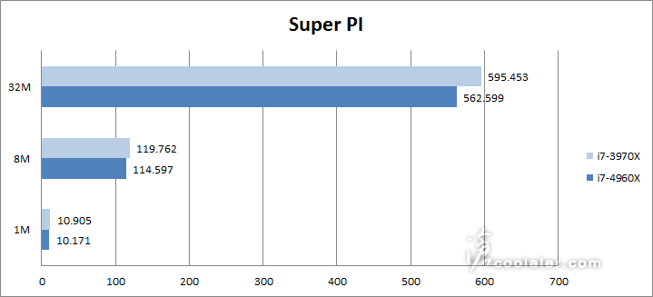這顆U實際上應該是Core i7-4960X,從性能上看比Core i7-3970X提升並不算明顯,算起來也就是5-10%的樣子,這還是基礎頻率高100MHz的情況下實現的,所以如果你現在已經入了SNB-E的主板和處理器,升級到IVB-E平台也沒什麼必要了。