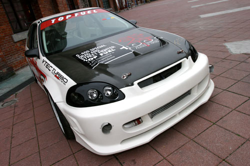在日本,很難想像一部車改裝之前會有所謂的理念堅持,不過如果是製作一部要代表一間廠的鎮店車,那麼豈有不將這精神融入的道理,就像Top Secret許多年前的金色大魔王系列、RE雨宮風林火山RX-7,儘管車種都是再平常不過,但能將招牌的印象留在車迷心中如此久,都是因為形象的建立與包裝,簡單來說,就是接下來一段時間內,說到那家廠就立即讓人想到那部車,這種方式也是日本改裝廠普遍的行銷手法,尤其最容易在各大改裝車展中現身,藉此來打開知名度,當然以本田車系改造渦輪著名的Top Fuel也不例外,本文主角這一部EK9是97年開始打造,廠方以直線加速為主要舞台設定,為了有個指標意義,「零-1000始動」理念便成為車輛打造的精神所在,強調與感性同步的刺激感,伴隨著技術資質來讓車輛達到應有的存在感,而且,一切皆是由「零」開始,這樣的宣傳手法是不是讓國內車主很不習慣,改車就改車怎會需要這麼多不必要的東西呢?換個角度想想,這樣的手法下,不同車廠自我精神與風格的彰顯,是不是相對也比起國內來得強呢?
