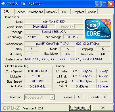 ID : 650059Submitted by GIGA | Wed, 12 Aug 2009 12:25:38 +0200 | Validated by CPU-Z 1.52.1